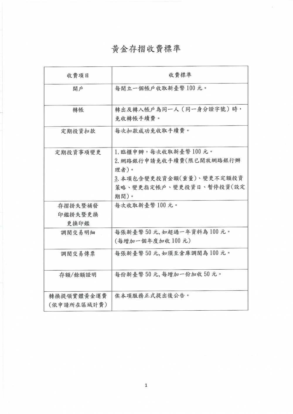 - 辦理黃金存摺各項事宜,如有涉及贈與、繼承及應納稅捐等情事,係由投資人或其繼承人自行申報與負擔。