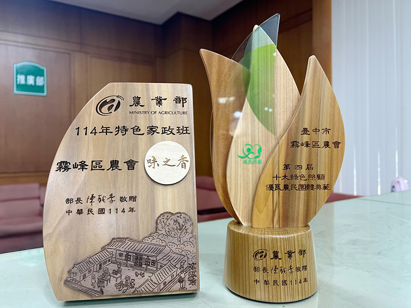 本會榮獲「十大綠色照顧優良農民團體典範」及「味之香~特色家政班」兩項殊榮!